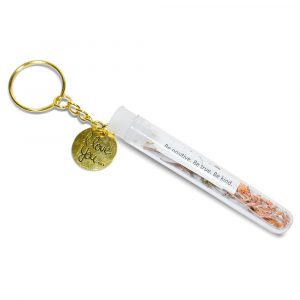 “God bless you.” Purchase this for yourself, family, friend, or stranger. It’s self-explanatory but, you are awesome! “God bless you.” captured inside with Baby Breaths flowers painted metallic gold with bronze keyring and Peace word charm. Leaving your home with that peace of mind…